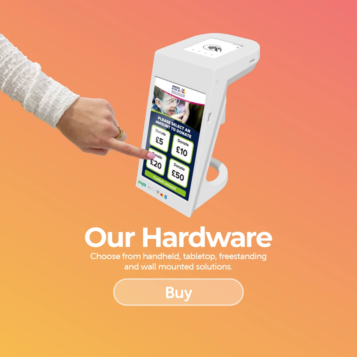 Payaz devices provide an ideal solution to convey your message and grab donors attention in a competitive space.